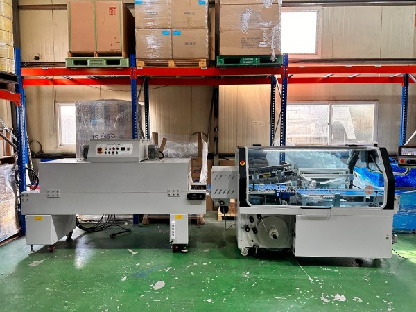 이탈리아 미니팩 제작의 자동 L실러와 자동수축터널 셋트로, 실링바 사이즈 600*400, 제품높이 최대 240mm 까지 수축포장이 가능하며