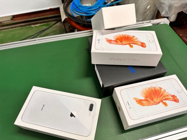자동 공급 컨베이어에서 휴대폰박스가 투입되면 컨베이어를 통해 이동되며