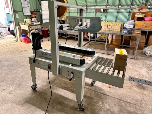 박스진입부에는 무구동 롤러가 달린 보조컨베어가 달려있어서 박스를 접어 제품을 넣기 좋습니다.