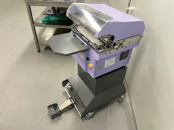 두손으로 비닐파우치를 올려놓을수 있도록 작동은 풋스위치로 하면되고
