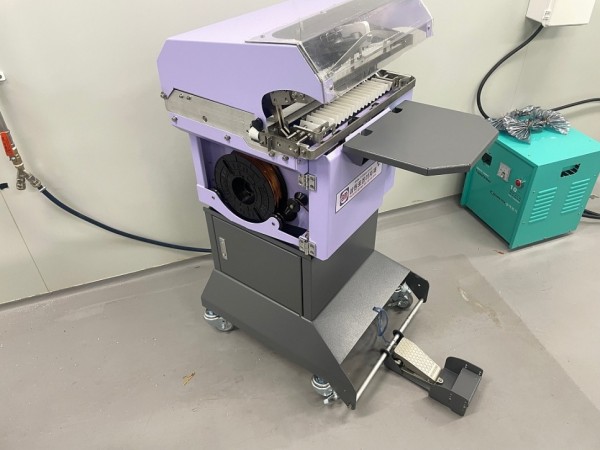풋스위치로 작동시키면 철끈, 칼라타이로 부채모양으로 꼬아서 결속을 완성합니다.