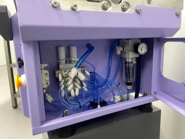 작업자가 비닐파우치를 잡고 작업할수 있도록 작동은 풋스위치를 이용하며