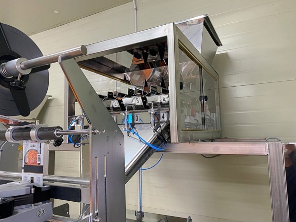 스틱포장기의 작동에 맞춰 4연식 자동계량기가 중량 계량하며, 날짜 날인까지 함께 진행됩니다.