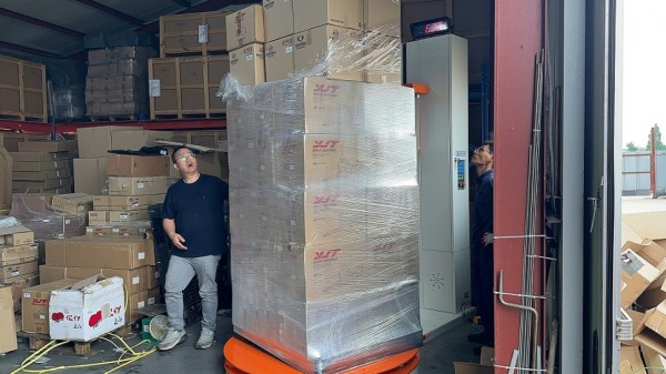 랩핑기의 턴테이블 하단에 무게측정 저울이 달려있어서 파렛트를 올려놓으면 무게를 확인할수 있고