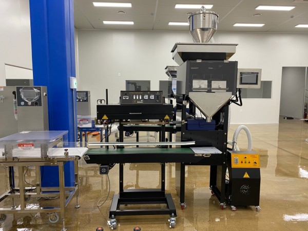 진공이송기와 자동계량기로 소분포장후 파우치를 실링하는 밴드실러, 금속탐지기까지 연동해서 셋팅할수가 있습니다