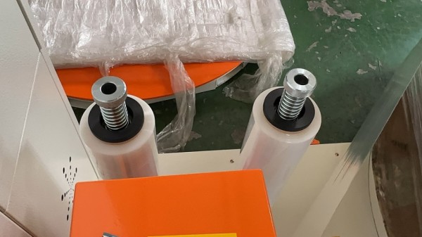 이번 주문제작된 랩핑기는 모터가 커버안으로 들어가는 표준형으로, 랩을 두개 연결해서 랩을 겹으로 랩핑하는 더블헤드 사양에