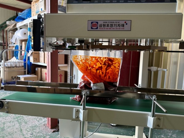 고추장 같은 소스, 액상, 국물 등 실링할때 쏟아질수 있는 액상 내용물은 수직형밴드실러를 사용하면 됩니다.