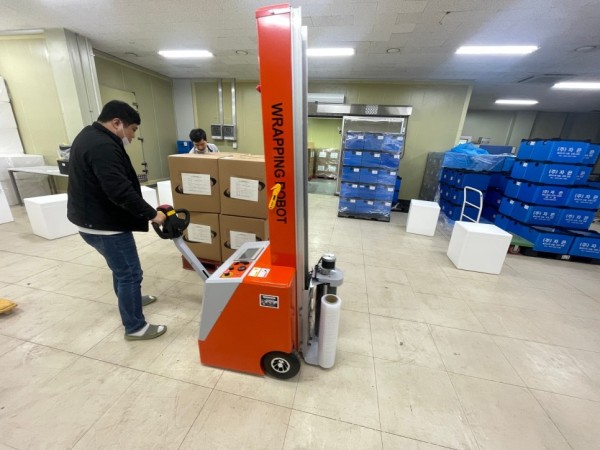 이동형 랩핑기, 랩핑로봇으로 랩핑기 이동해서, 자동랩핑도 안전하게(랩핑로봇 R4)