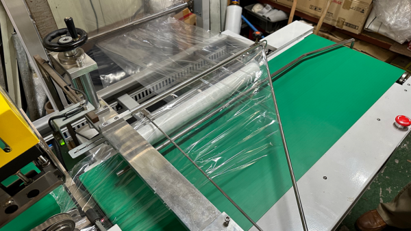 컨베어에 제품이 투입되면 순차적으로 제품이 공급되면서 센서가 제품을 감지해 자동으로 실링, 커팅하게 됩니다