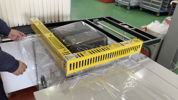 500*700사이즈의 반자동 공압식 엘실러(L-Sealer)와 터널 내경800*500 사이즈의 자동용 수축터널 조합으로
