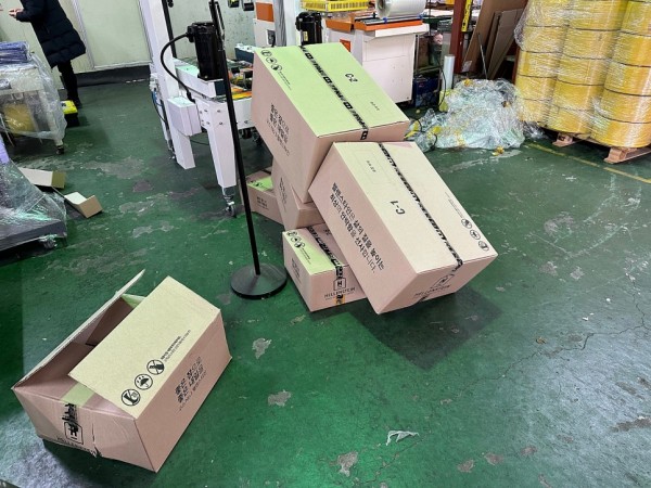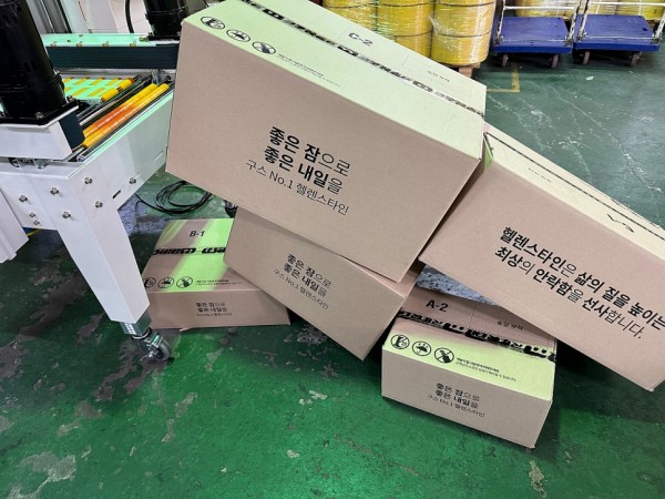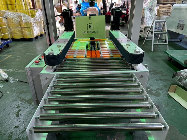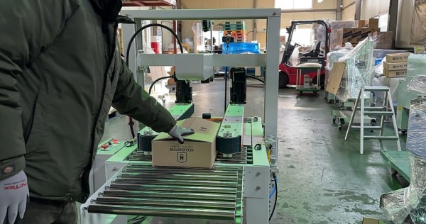 물류센터에서 사용하는 박스포장기계, 랜덤탭핑기 시운전(리디아알앤씨 물류센터)