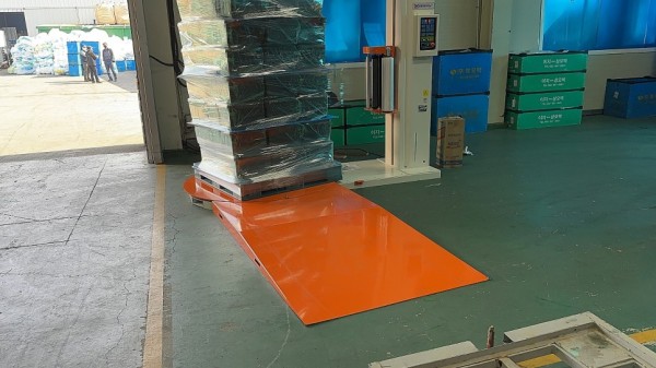 작업현장에 랩핑기는 쓰고 싶은데, 지게차는 없다면. 랩핑기와 경사판을 사용해보세요