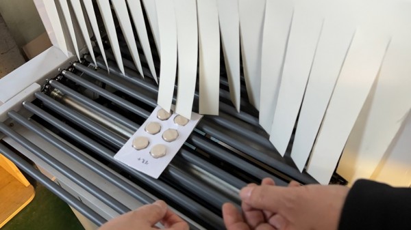 작은크기로 수축필름의 여유를 거의 주지 않고 엘실러로 실링후 수축포장이 잘나오는지 먼저 테스트작업을 했습니다.