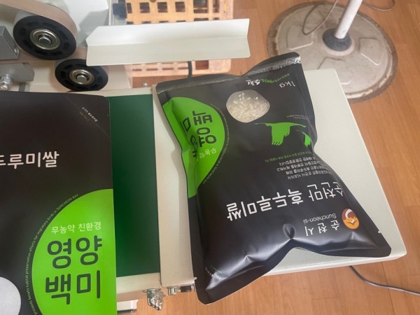 연속으로 작업이 가능하고 쌀 뿐아니라 각종 비닐 실링에 유용해서 인기가 많은 포장기계입니다.