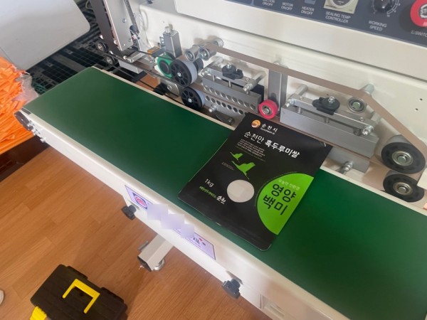 밴드실러는 리본타입의 날인기와 실링을 동시에 하는 실링포장기계로 이번에 쌀을 소분포장해서 실링하는 작업에 사용할 예정입니다