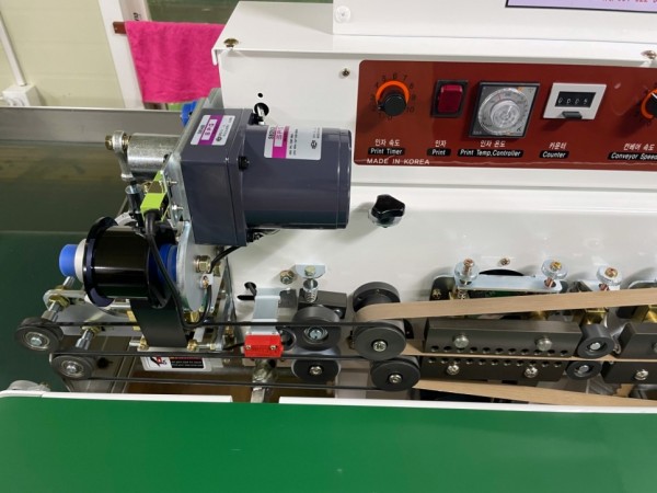 실링, 날인의 온도조절 및 컨베어속도 동을 세밀하게 조정할수 있으며 작업수량을 확인할수 있는 카운터, 비상스위치가 달려있습니다.