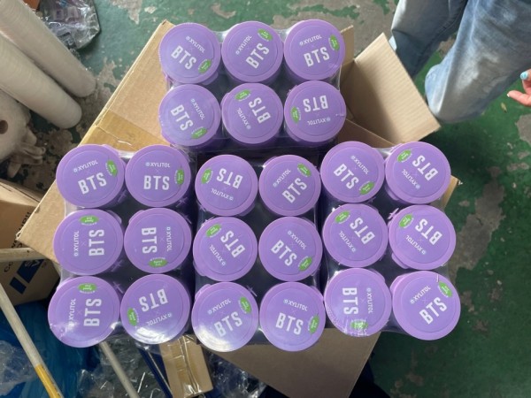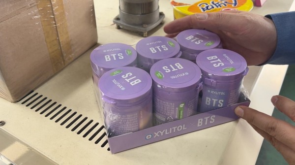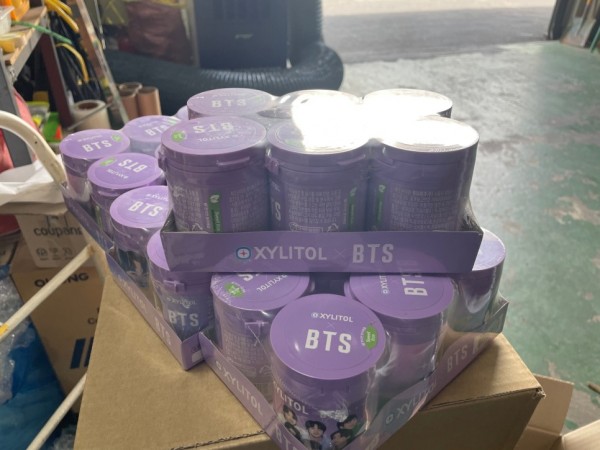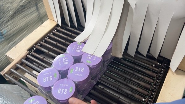 트레이에 담긴 6개들이 껌을 번들포장하는 작업으로