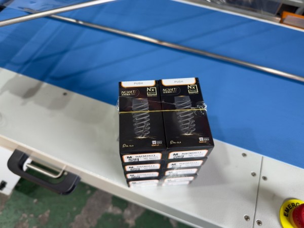 10개의 박스를 묶음으로 만들어 수축포장 작업을 진행했습니다.