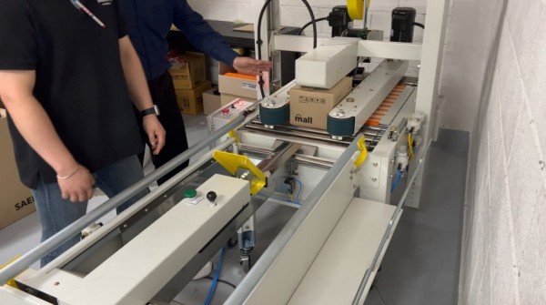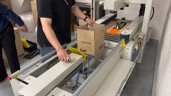 박스를 접고, 제품을 담고, 박스를 포장하는 과정에서 두개의 박스포장기계를 연결해서 사용할수가 있는데요