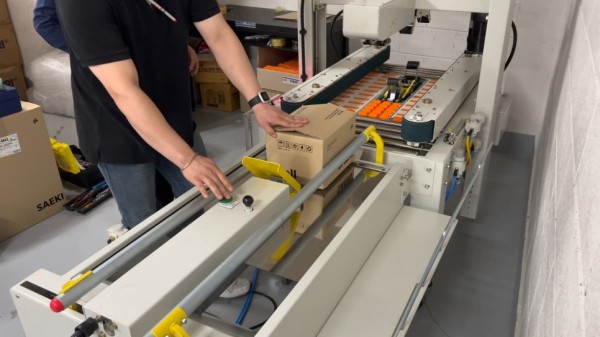 보통 박스에 제품을 담기 위해서 많은 기업에서 박스를 미리 접고 하부만 테이핑을 해서 박스를 쌓아놓아 공간을 많이 차지하는데