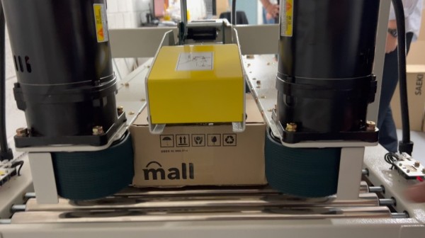 일반적인 반자동탭핑기가 박스의 크기별로 투입하고 높이, 폭을 조절하는것과 달리 다양한 크기의 박스를 랜덤으로 투입할수 있는