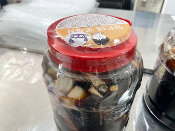 용기에 간잔게장이나 새우장 같은 액상제품이 들어 있기 때문에 넘어지지 않고 수축포장하는 탑체인수축터널, 탑체인터널이 제격입니다
