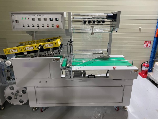 제품의 크기에 맞게 다양한 폭의 수축필름을 사용할수 있으며, 타공 추가 및 경보알림등 자동화 포장라인을 구성할수 있는 엘실러입니다