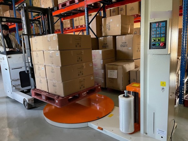 턴테이블이 돌면서 랩을 자동으로 감는 랩핑기, 파렛트랩핑기는 센서가 제품을 감지해 파렛트부터 제품을 함께 랩포장해주고 랩이 늘어나는 연신율이 150~200%까지 높아져 랩 사용도 현저히 낮출수 있습니다.