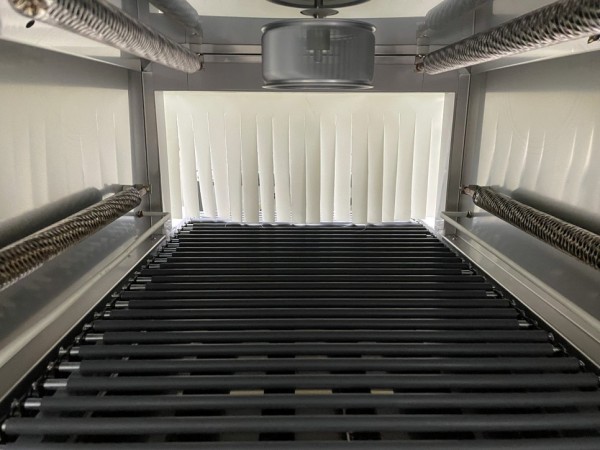 수축터널 역시 제품의 사이즈에 따라 주문제작되며, 제품의 종류에 다라 봉타입, 매쉬타입의 컨베어로 제작됩니다