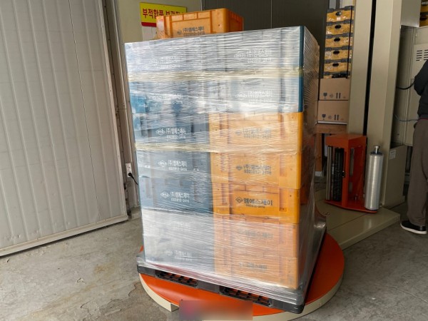 특히 하단은 파렛트와 제품을 단단히 고정해주기 때문에 물류, 보관등을 위해 랩핑기로 포장을 하면