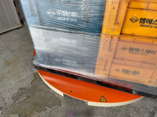 랩핑기는 6~700kg의 무게로 턴테이블의 아래 포크홈이 있어서 지게차로 이동이 가능합니다