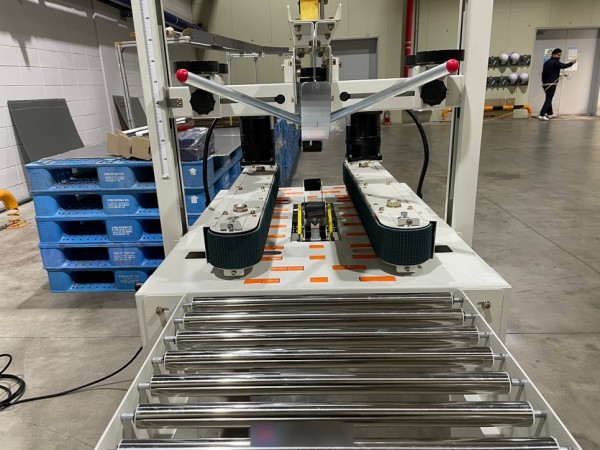 진입부에는 박스를 접어 제품을 담을수 있는 보조컨베어가 기본 장착되며