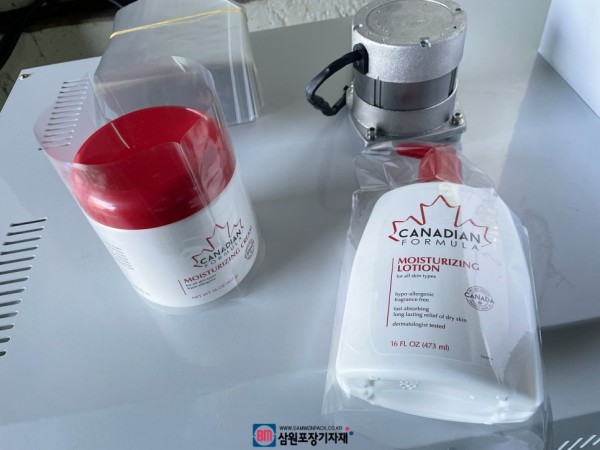 화장품포장을 할때 화장품용기에 그대로 비닐(수축필름)을 씌우고 열수축해서 수축포장할때 보통 히팅건등으로 수작업을 하시는데요