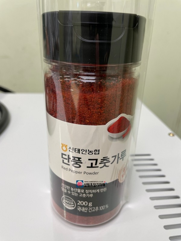 오늘은 고춧가루 용기포장을 위해서 수축터널을 납품했는데요