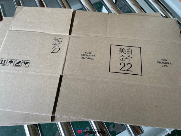 요즘 인기가 있는 화장품인데 박스높이가 80mm정도밖에 안되는 높이였고, 자동포장이 필요한 상황이었습니다.