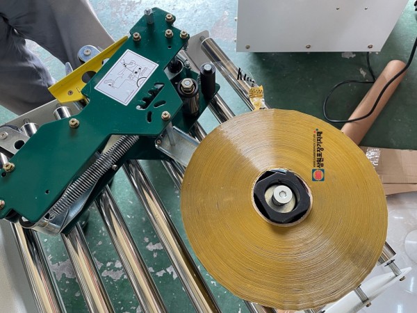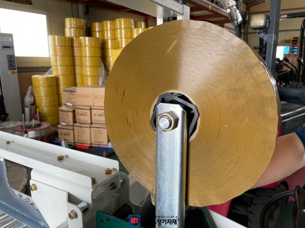 1000m의 기계용테이프는 투명외에도 색상별로 구입이 가능한데요, 베이지색상과 청색으로 포장을 하신다고 해서 같은 테이프를 연결해드렸습니다. 탭핑기는 테이프교체만 할수 있으며 쉽게 사용할수 있는데요 상부 테이프헤드는 고정형이고