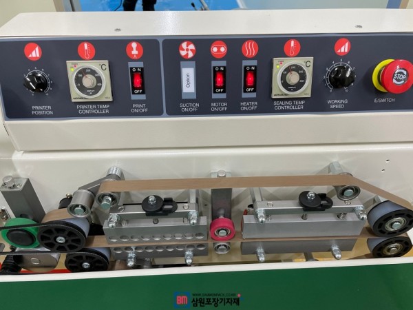 대부분의 밴드실러에는 비닐의 진입을 감지하는 물리적인 센서를 달아서 날인을 하게 되는데 파우치가 길거나, 주름이 있을경우 오작동할 확율이 높은데요, 삼원포장의 밴드실러는 독일 LEUZE 광세서를 달아서 날인 작동오류가 없이 사용을 할수가 있습니다.