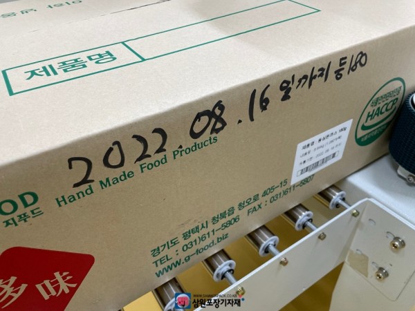 롤코더 장착 탭핑기로 박스포장에도 제조일자를 날인할수 있습니다(지푸드)