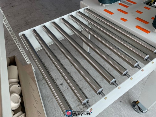 여기에 자바라를 연결하면 박스 배출과 동시에 자동이동이 가능해서 테이핑기, 자바라 발주는 항상 같이 하시게 됩니다.