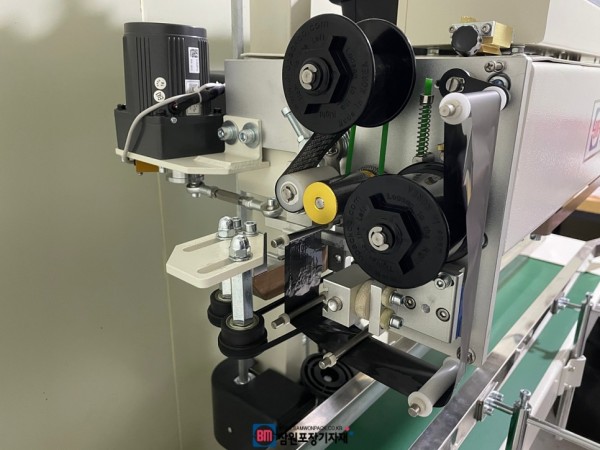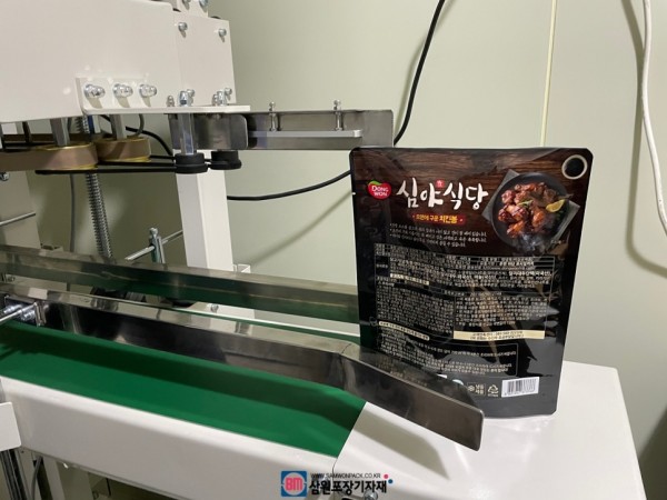 액체, 국물등의 액상 제품을 포장하는 액상파우치, 스파우트파우치등을 실링할때 사용하는 수직형밴드실러, 수직실링기는 파우치를 세워서 실링하고 날인까지 동시에 해주는 포장기계입니다.