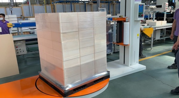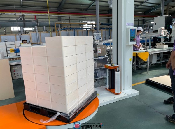 랩핑기는 파렛트위의 제품을 자동으로 감지해서 랩포장하는 기계로 작업만족도와 효율이 높아 만족도가 높아