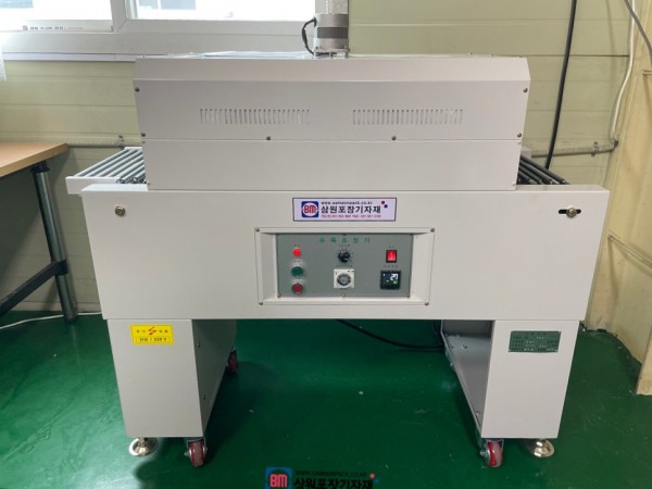 반자동수축터널로 오른쪽에서 왼쪽으로 작업방향이 진행되며 POF, PP, PO, PVC등의 재질의 수축필름 포장에 사용할수 있습니다