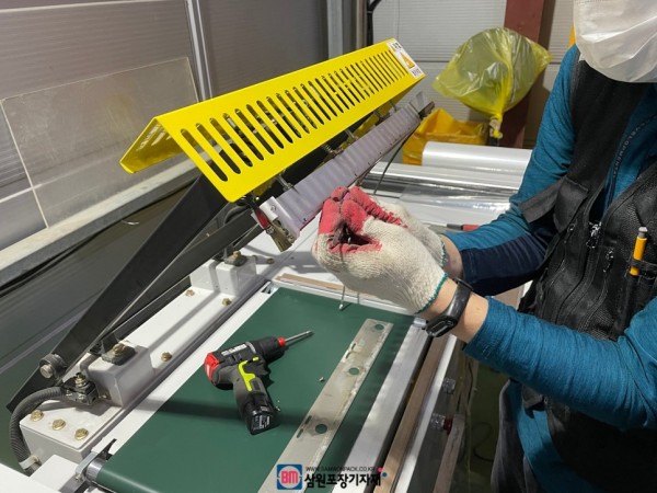하루종일 반자동수축포장기를 풀가동하면서 수축터널의 컨트부분과 히터 점검이 필요했고 엘실러의 칼날, 테프론부분의 교체 요청을 하셨습니다.