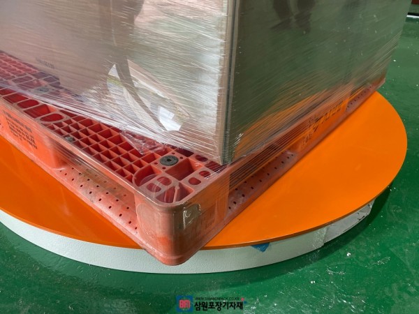 턴테이블이 회전하며, 랩이 당겨지면서 랩이 늘어나면 기존 손으로 랩핑하는것도 보다 훨씬 랩을 절감할수 있으며,