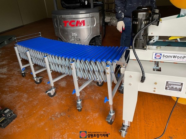 박스포장후 원하는 장소까지 자바라로 이동이 가능합니다.(5m, 450mm)