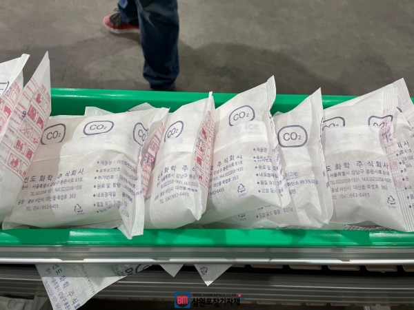 제품을 감싸고 센터실링이 된 드라이아이스는
