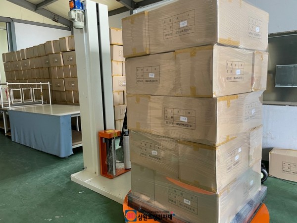 여러개의 박스를 랩으로 포장하면 포장효과뿐아니라 견고하게 파렛트와 고정해주는 효과까지 보실수 있습니다