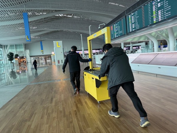 설치를 위해 밴딩기를 인천공항에서 이동시키고 있는데요