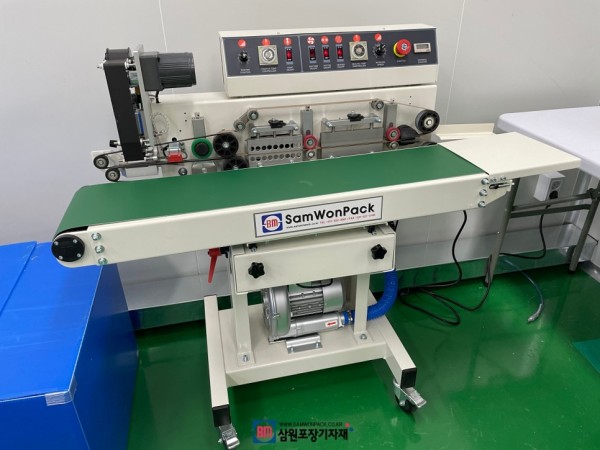 실링하는 입구에 탈기(공기를빼주는) 기능이 달려있어서 파우치의 공기를 빼주고 실링후 날짜등을 날인할수 있게 한 실링기로