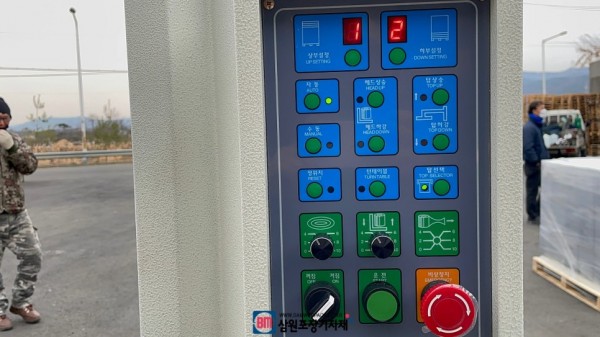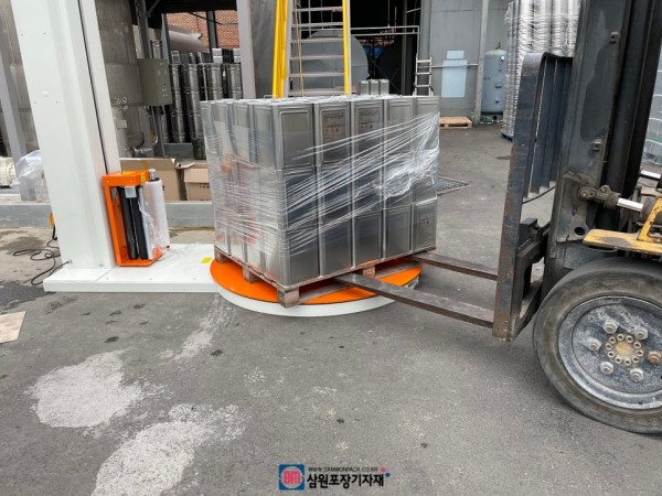 지게차로 파렛트제품을 올려놓고 랩포장을 하면 진입했던 위치 그대로 멈추게 됩니다